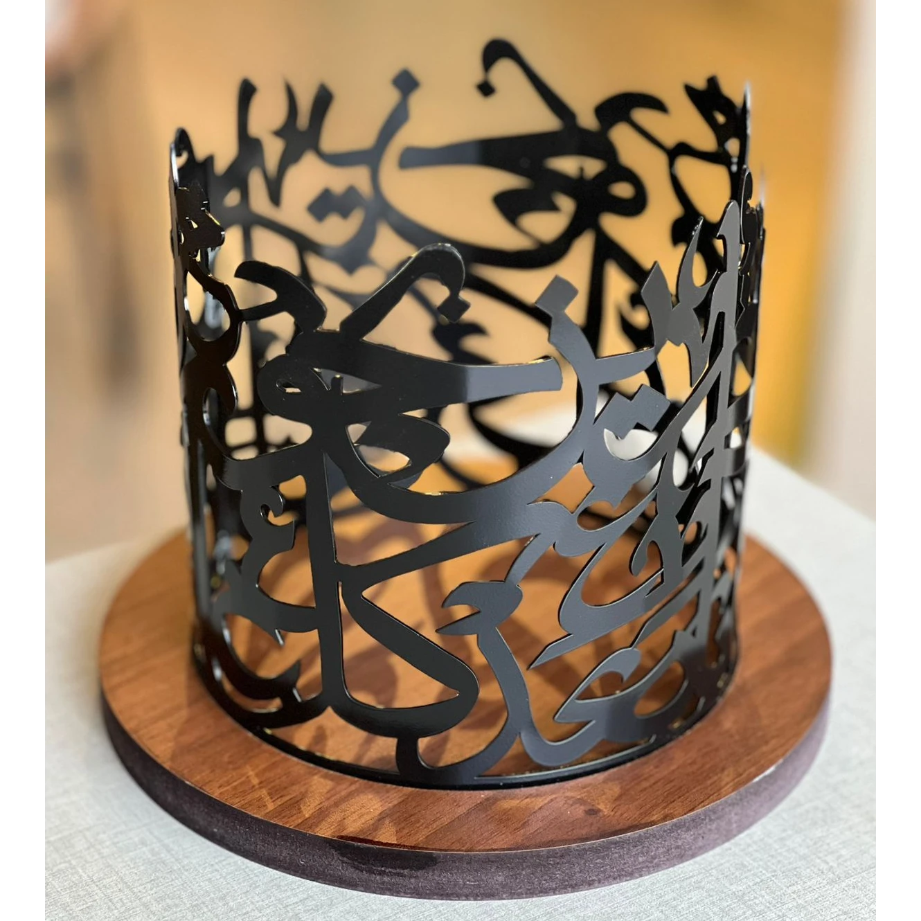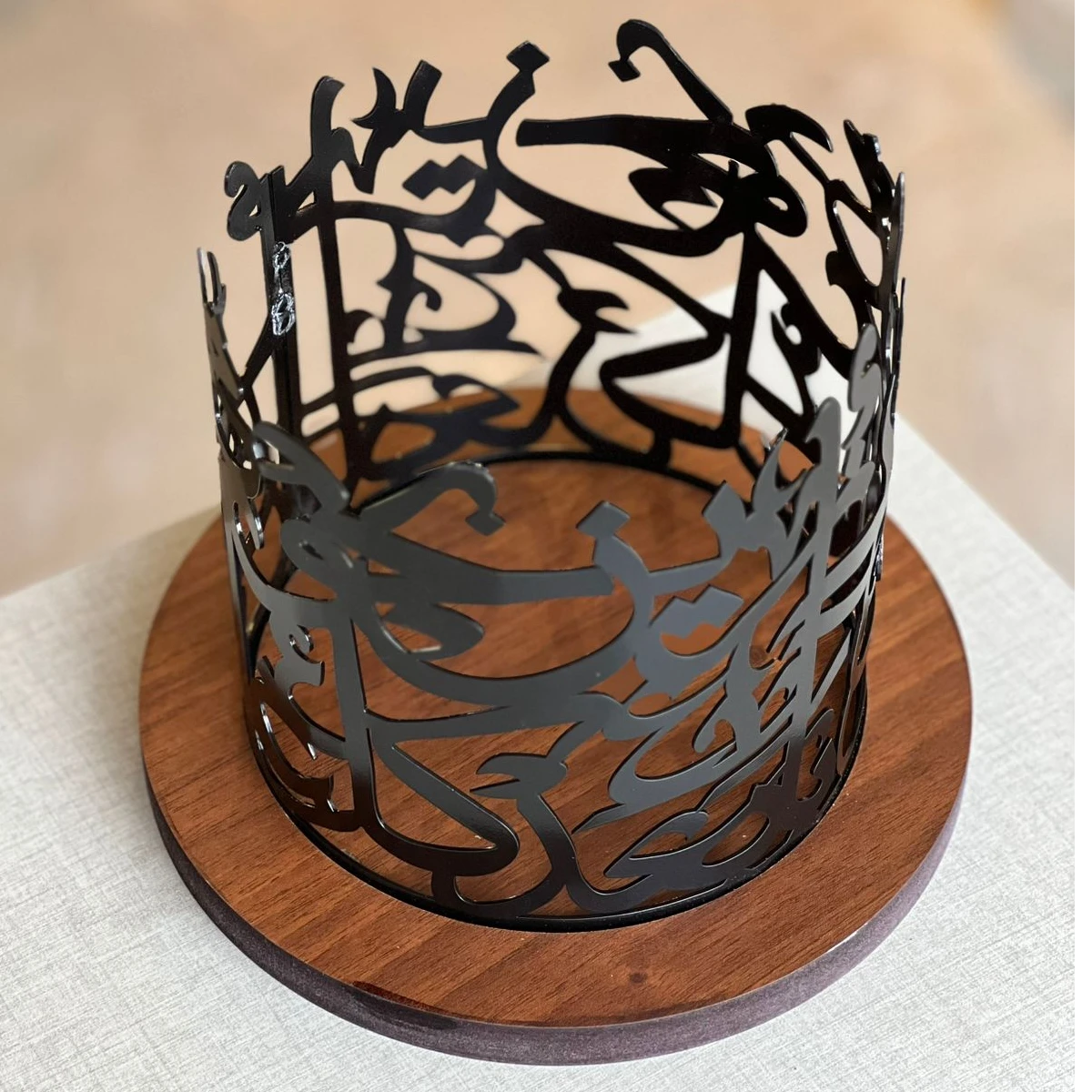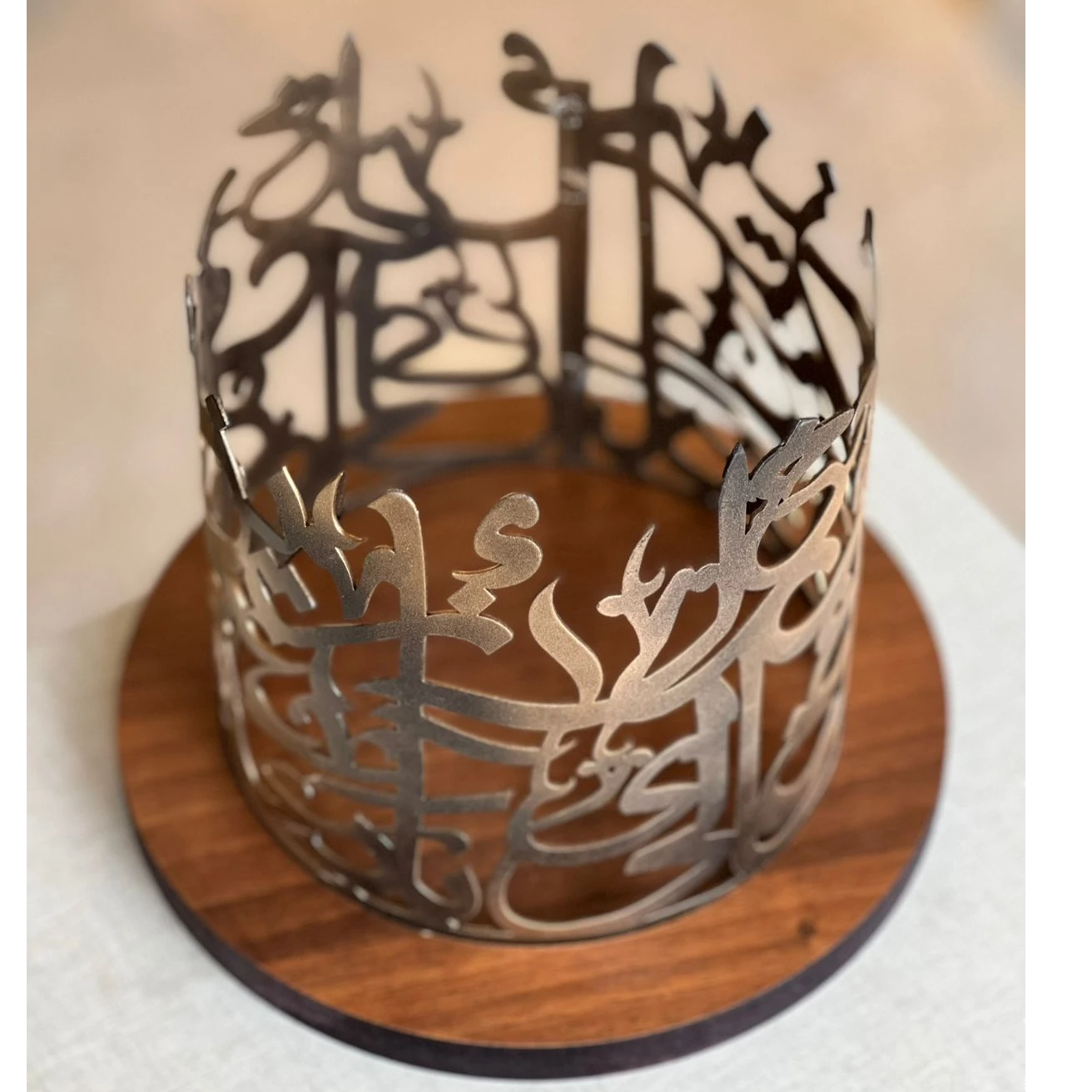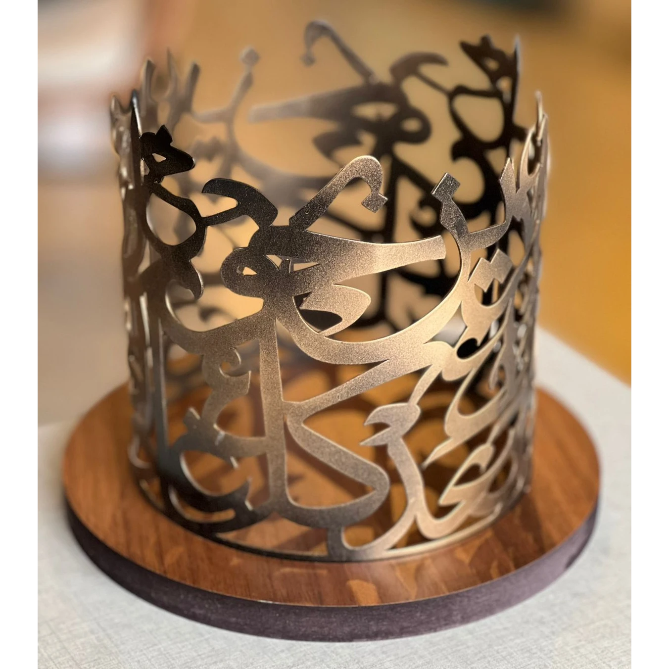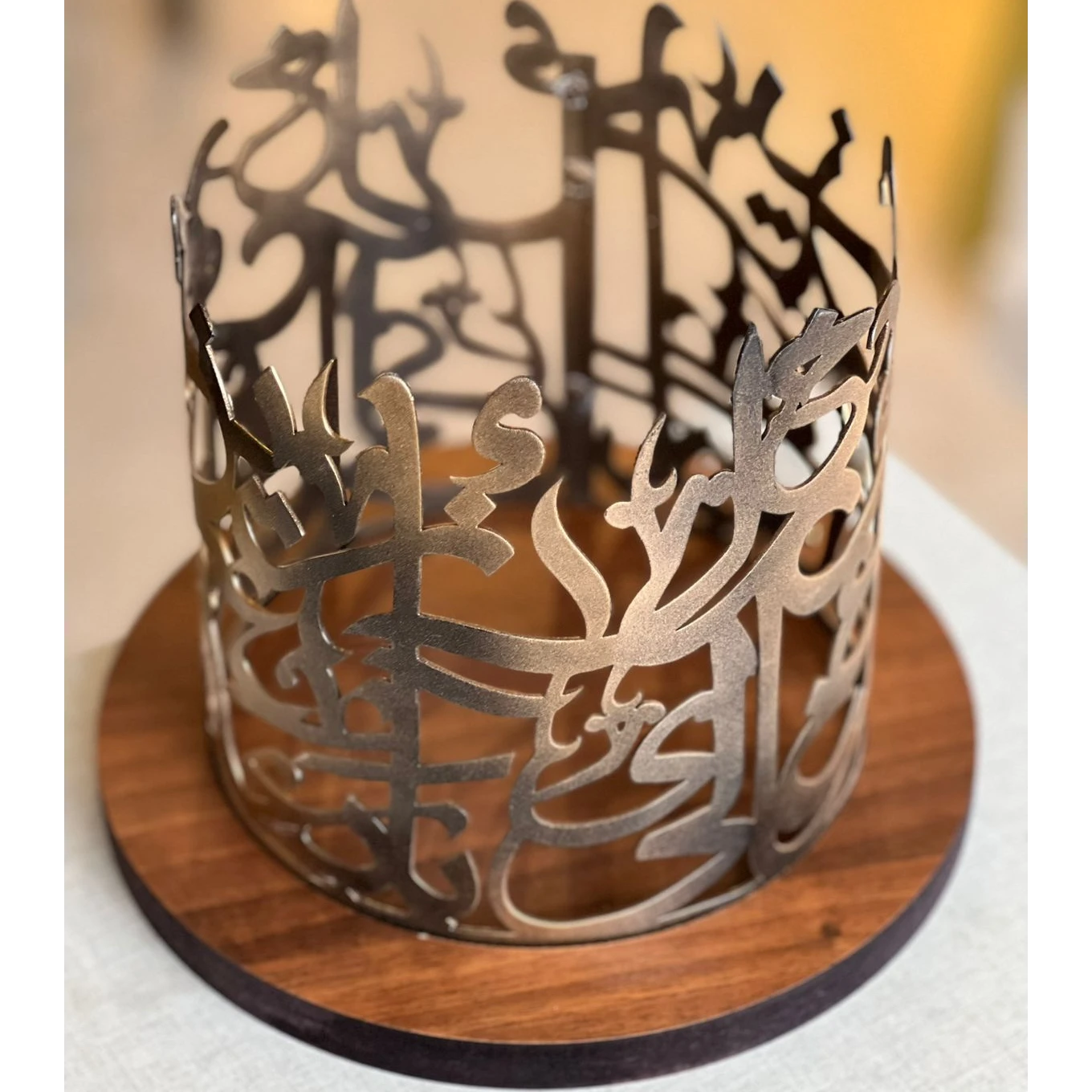 من خامة الحديد والخشب بارتفاع 17 وقطر قاعدة 21.5 سم